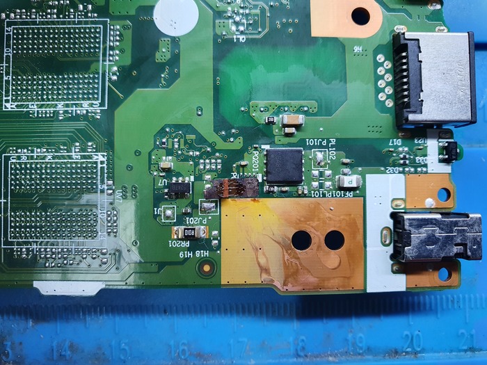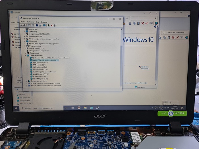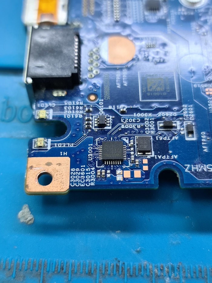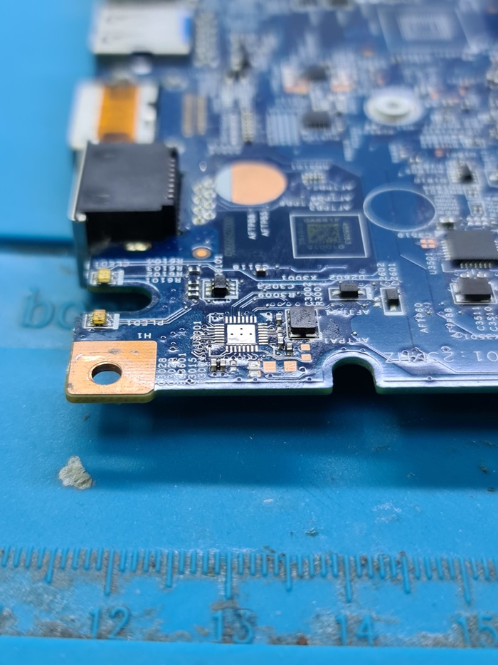 А вот при подключении LAN-кабеля тишина. В диспетчере наш контроллер не видится. Снова разбираем ноутбук и под микроскоп, а там: