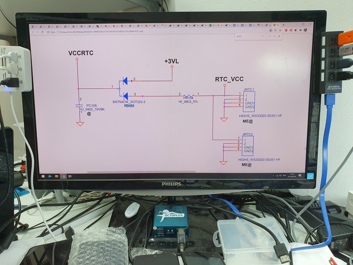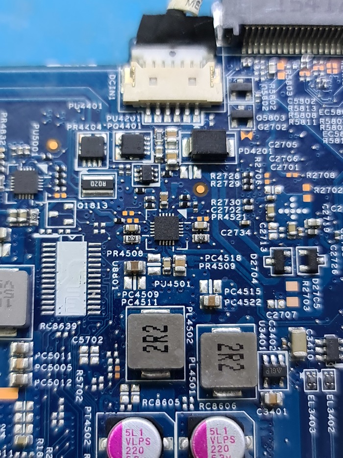 А греется ШИМ дежурных напряжений с маркировкой 5x= что-то там... Ну это не удивительно, что он греется в таком режиме, когда в одной из линий где-то не хороший потребитель... На этом этапе у меня уже появились мысли и решил их проверить, снял плату с доп. платой и подключил к ЛБП - потребление то же 70мА, а без нее 10мА. Собственно логично предположить, что виновник всего контроллер картридера, ибо других потребителей там нет. Кстати, при подключенной доп. плате ВСЕ показатели так же в норме, заниженного сопротивления нет..
