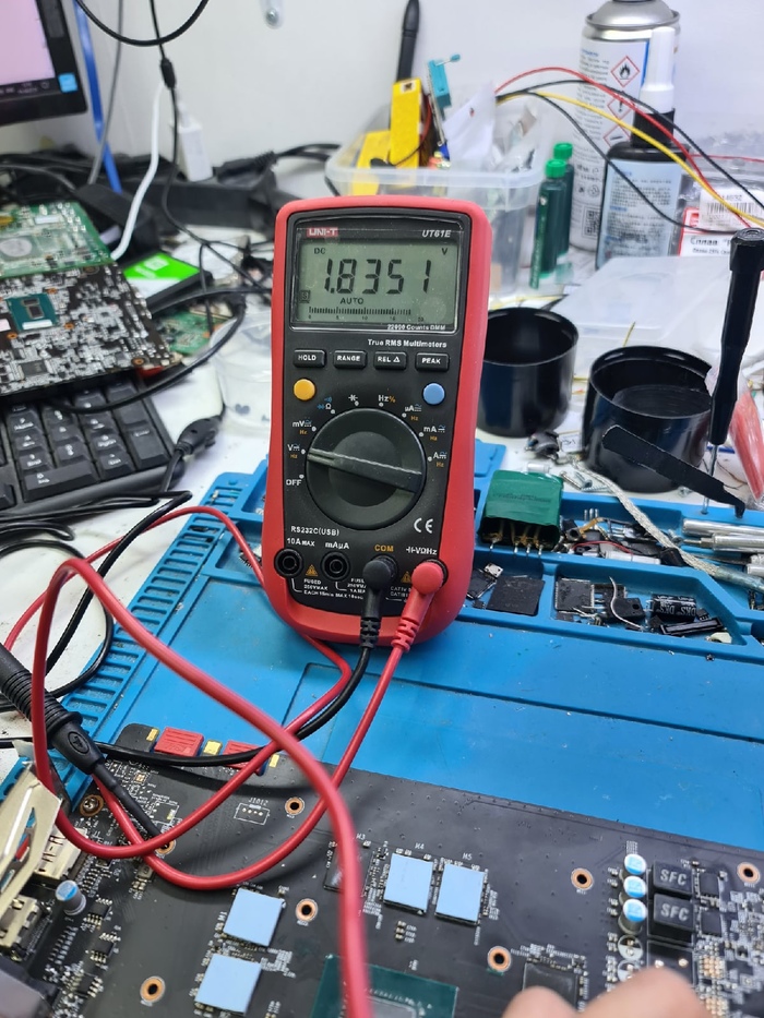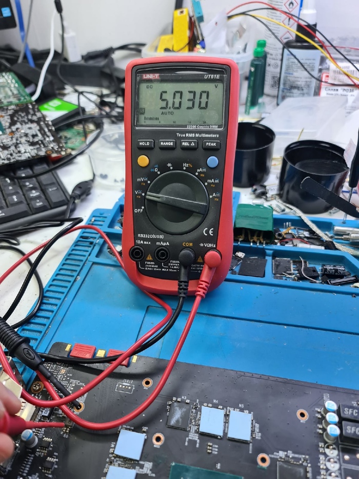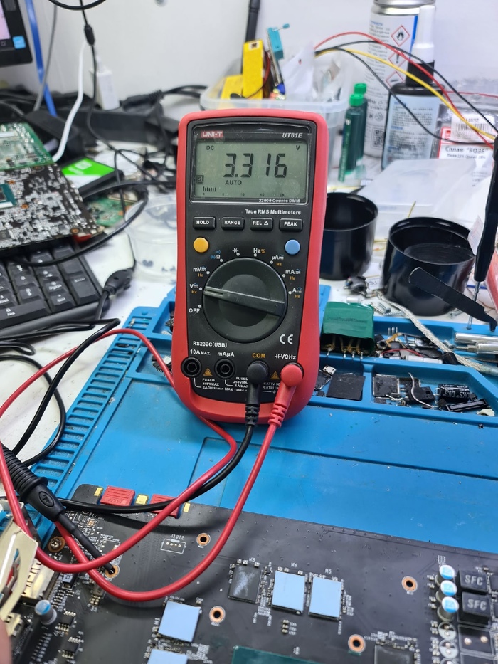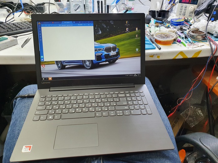 А в дальнейшем, что если подключить модуль обратно, но отключить матрицу, то ноутбук так же стартует и дает картинку на внешний монитор. При всем при этом высокое потребление в 70мА в дежурном режиме так и остается. Собственно ничего не понятно, но понятно только то, что что-то должно где-то греться. Подключаю все и будем искать виновника высокого потребления используя дорогущий тепловизор палец: