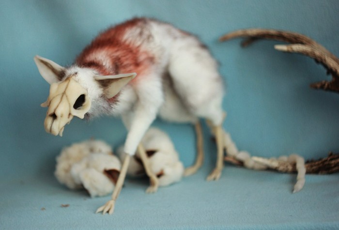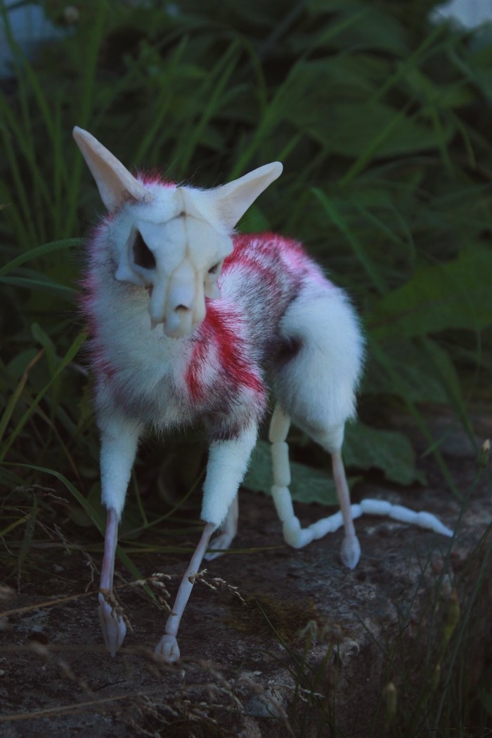 Я фанат всяческих черепов, костей и прочей рухляди, без крови ,конечно, и торчащих внутренностей. Решила совместить лепные черепушки с пушистыми телами, но добавила при этом длинный подвижный скелетированный хвост. Не важно олень это, единорог или другой зверь, хвост подвижный и прикольный на ощупь) Надеюсь вам понравятся тварюги😉