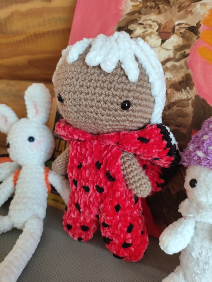 Хотя в процессе я и поняла, что часть костюма без капюшона отлично вписывается под арбуз🍉)