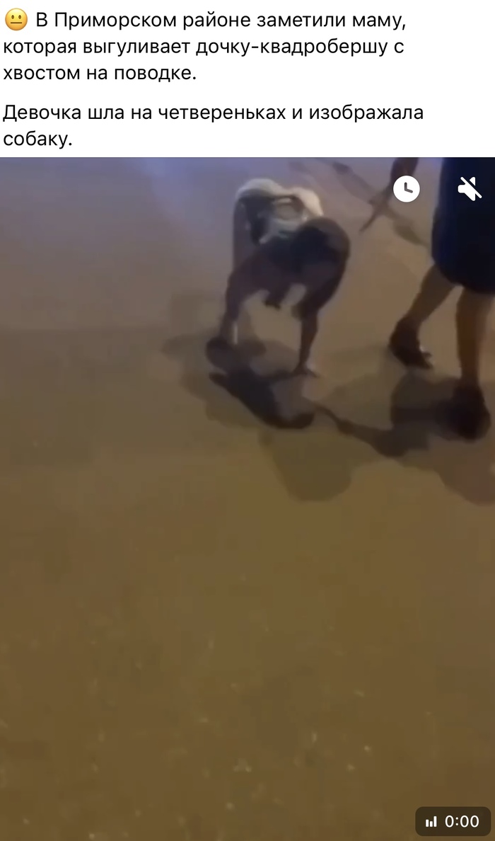 Правда квадробинг не такой безобидный, как зайчик, скачущий на утреннике. Крайне травмоопасно, грязно и не физиологично. Не привык наш опорно-двигательный аппарат к имитации движения животных. И такое количество грязи наш организм не готов в себя впитать. Вот мама идет с этой девочкой, а руки по асфальту шаркают. Ссадины, порезы, царапины, грязь. И пожалуй, это единственное за что стоит беспокоиться. Что думаете вы?