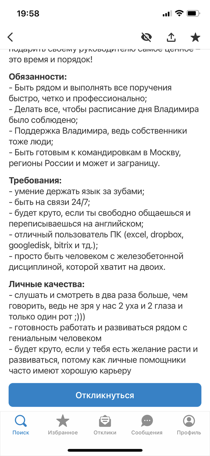 Написала ещё раз заявление на возврат трудовой, задним числом. Пообещали скинуть трек-номер. Нихуя. В итоге сейчас апрель, трудовой нет, трек-номеров нет, управляющий ушёл в игнор. То есть, какое-то время он ждал, когда там кадровики придут с выходных, а потом, судя по всему, Второе пришествие. А теперь просто не отвечает.