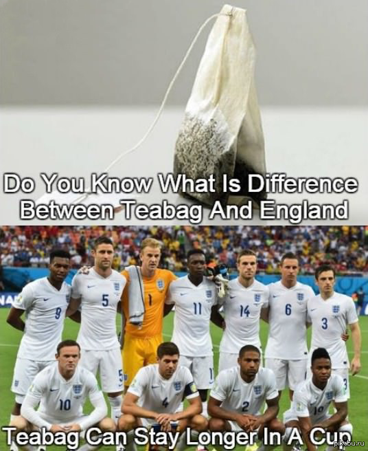 275 SomeH8Stuff Игра слов 10 лет назад "В чём разница между чайным пакетиком и Англией? Чайный пакетик может оставаться в чашке (cup=чашка=кубок) дольше" Англия Футбол Кубок