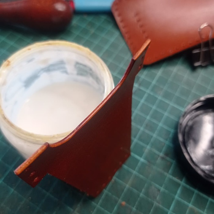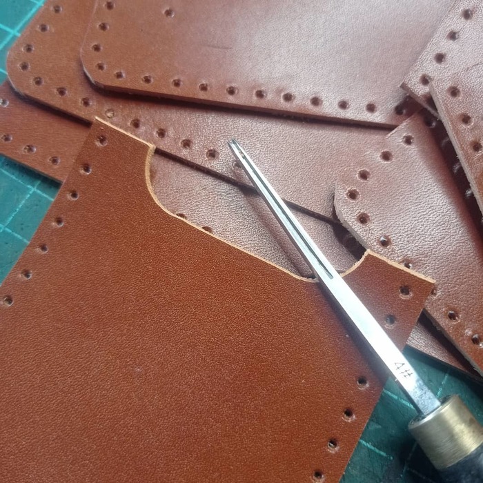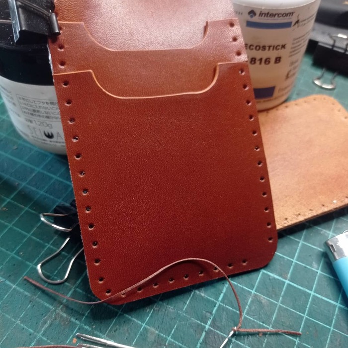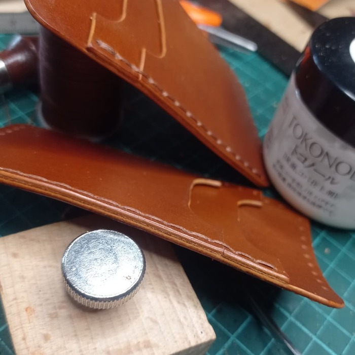 Обработку урезов на тех деталях, что пришиваются в первую очередь пропустил (на фото), поэтому следующее фото — склейка.