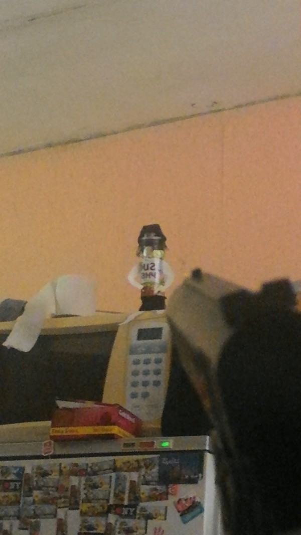 Доброго времени суток. Это моя "мишень" стреляю в неё из обычной детской воздушки (вмятины от пластмассовых пулек), сегодня задумался, что негоже стрелять в безоружного. Решил придать ей больше эдакой дерзости)))