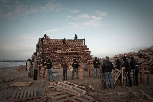 В некоторых городах Нидерландов сохранилась старая традиция жечь огромные костры в новогоднюю ночь. Для этого специально сооружают высокие башни из старых ящиков, паллетов и поддонов, которые потом поджигают. Подобные зрелища стали коммерчески выгодными, так как на них приезжают посмотреть туристы и даже есть спонсоры, размещающие на ящиках свою рекламу. Как проходит это праздничное действо, смотрим далее.