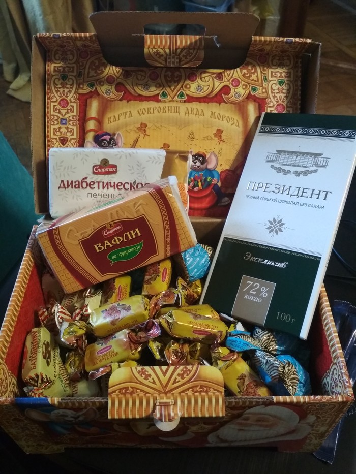 И второе по очереди, но не по значению ГИГАНТСКОЕ СПАСИБО @Pipkapip, ты просто продлила мой новый год)))) спасибо за огромный мешок белорусских сладостей, это ОЧЕНЬ вкусные и сладкие конфеты и совсем не похожи на пластилин, ребята, вот прям КОНФЕТЫ!! а ещё вафли, печенье, шоколад.... Просто моя баба Мороз))) я отобрала у мужа опустевшую коробку от новогоднего набора конфет, и теперь у меня свой настоящий набор конфет!!!!!