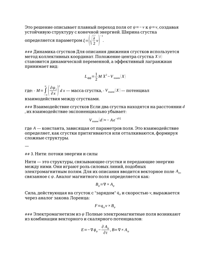 1.6 Эмерджентные фундаментальные силы Все четыре фундаментальные силы (электромагнитная, сильная ядерная, слабая ядерная и гравитационная) являются проявлениями взаимодействия сгустков через поле Ψ и его нити на разных масштабах:
