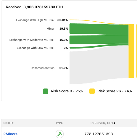 Интересно, но адрес 0x574226d249225d063a6850b501525e828feebd3b – получал много средства с адресов принадлежащих майнерам.