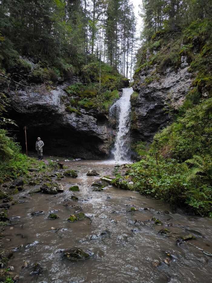 После обеда была попытка половить хариуса, но без результата. Поэтому остаток дня любовались видами, хомячили разную еду и ничего не делали. Грести нужды небыло, так как течение реки вполне хватало чтобы держаться графика. Ближе к вечеру добрались до водопада.