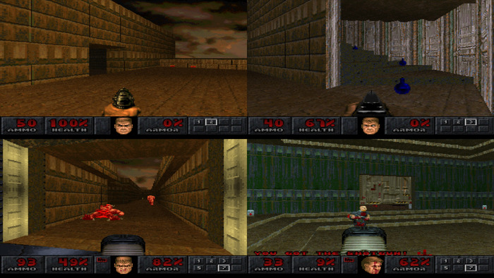 Ещё во второй "Кваке" портировали мультиплеер, но он перешёл на консоль в примитивном состоянии. Число игроков колеблется от двух до четырёх, и всё это дело происходит на разделённом экране, что является довольно таки издевательской штукой. Мало того, что тебе надо пялиться только на свою часть экрана, так ещё можно посмотреть, где находится твой противник. Я знаю, что некоторые игроки отрывали часть коробки, прилепляли её ровно по линии разделения, и один из них садился на верх дивана, а другой сидел на полу. Но такие вот выкрутасы требуют дополнительной выдержки, ибо неудобно. При наличии дополнительного девайса можно было подключить ещё два геймпада к двум стандартным, но этот девайс ещё надо ведь купить! Сетевой интернет-кабель консоль в то время не поддерживала. Да и кто согласится играть в мультиплеерный шутер на геймпаде?