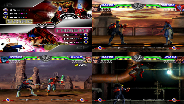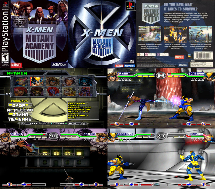 В X-Men: Mutant Academy, несмотря на её достоинства, поменьше контента, нежели в продолжении. Всего десять бойцов, четыре из которых закрыты (и, насколько я помню, их надо в дальнейшем разблокировать), есть ещё несколько режимов, но самым задорным был режим на двоих. Если у вас был напарник, которому вы хотели навесить люлей, то в этой игре вы могли сделать это в полной мере и разными способами. Вы не подумайте, Mutant Academy не стоит с поднятой планкой, и он не достигает сияющих высот какого-нибудь Tekken'а, но у игры, безусловно, есть свои классные фишки. Меня лично удивляло лишь то, что персонажи в игре отличаются от героев фильма внешне (мультик по "Людям-X" я увидел значительно позже), но в целом я всё равно смог узнать Циклопа, Росомаху и Магнито, их черты и стили боя были просто на поверхности.