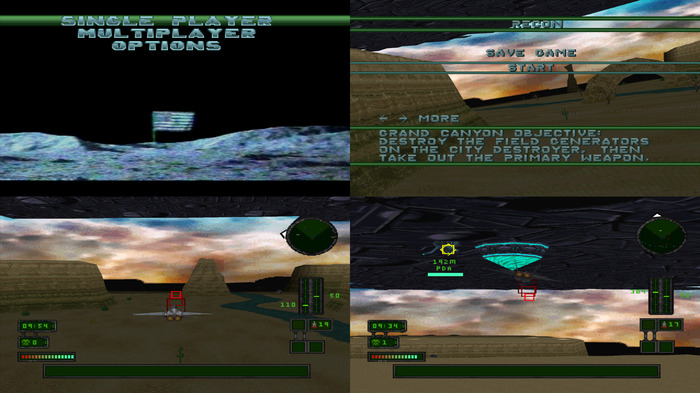 Мне кажется, что в этот выпуск я вместил слишком много хороших игр. Непорядок. Чтобы восстановить справедливость, поговорим об очередной дребедени, о той леталке-мозговзрывалке, от которой просто кровь стынет в жилах. Настолько игра, извиняюсь за выражение, хренова. И, как многие могут знать, эта action-flight сделана по одноимённому фильму, который у нас перевели как "День независимости". Относительно кинца я не буду многословен: это достаточно трешёвая подделка от компании "20-ый век Фокс", который был снят как большой аттракцион. Там всё было без смысла: сборище НЛО решило захватить мир, президент США и военные хотят остановить мировое зло и бла-бла-бла-бла. Короче, это пустой блокбастер с большими спецэффектами на тот момент, что вы ещё хотели здесь увидеть? Я его давно не смотрел, и навряд ли когда-нибудь пересмотрю, но чисто ради забавы, наверное, стоит оно повторного просмотра. Так как всё равно в фильме, семейном, даже без попкорна можно поприкалываться над его клише, штампами и сюжетными поворотами, так сказать.