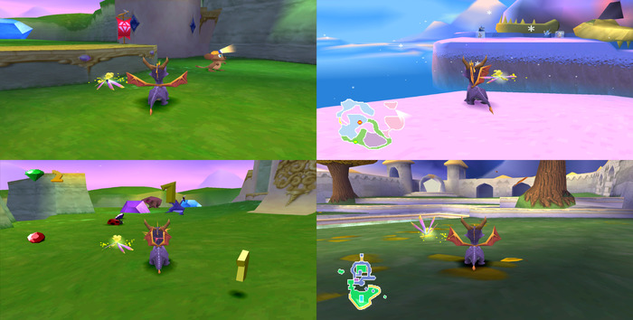 Если попытаться просто проходить уровни, без задней мысли, то игра кажется клоном Spyro the Dragon, но, осмелюсь вас заверить, изменения в игре произошли значительные. Теперь возможности Спайро можно апгрейдить, и первый из таких апгрейдов - это способность плавать под водой. Получается, что прохождение уровней порой может резко трансформироваться в подводные путешествия, но ведь эту улучшалку ещё надо заработать. Плюс ко всему уровни стали более богатыми на тропинки и просторными, хотя это всё мне может лишь казаться, так как мини-карту местности в первом Spyro нам не давали. Но вы можете сами всё рассудить: в первой части локация могла быть огромной только в виду наличия отдалённых платформ, где от дракончика требуется туда попасть во время полёта. А в этой части я заметил многоуровневость этапов, где есть огромная часть высоких платформ, а также низких платформ, попадаются даже скайримовские подземелья и куча лабиринтов. Короче, фиг его знает, но мне всё это дело видится так.