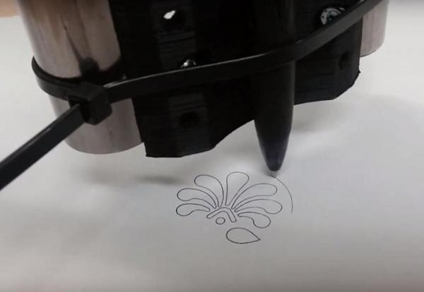 Примотал на стяжки ручку, опустил её к столу и нажал "Start". В начале я расстроился. Маленькие радиусы он делал просто ужасно (окружности больше походили на кривые многогранники). Я проверил натяжение ремней, жёсткость центральной части... Ничего не вызывало подозрений.