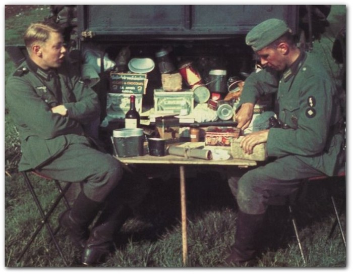 Не лишним будет сказать что за непосредственное участие в боевых действиях, так же полагалась дополнительная надбавки в районе 1 марки в день. Каждый немецкий военный помимо денежного довольствия мог рассчитывать на бесплатное трехразовое питание, жилье и обмундирование. После 1943 только и мог что рассчитывать. Суточный (тыловой) паек стоил в начале войны 1,50 РМ (11.4$) и талоны на питания можно было менять на денежный эквивалент. Но это правило действовало только в тылу.