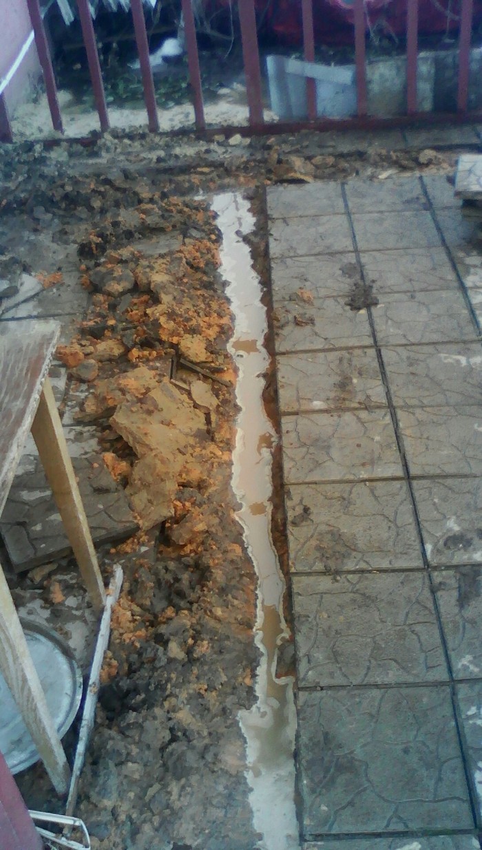 перепад уровня пола с наружним уровнем грунта около 5 см,но имеется щель( подручными средствами(герметиком) замазал) ,снял плитку,сделал хоть какой то канал для отвода.