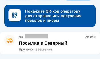 2. Открываете приложение Почты России, вводите номер или сканируете штрих-код и отправление появляется у вас в приложении