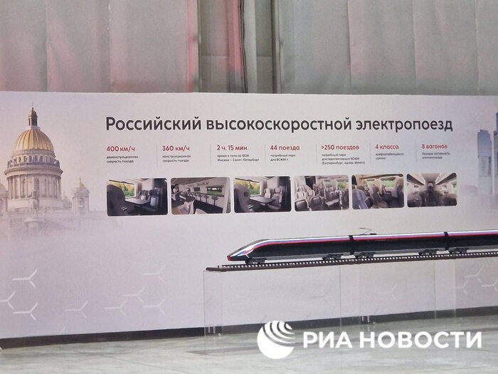 Что по подвижному составу? Это будет полностью отечественный поезд с конструкционной скоростью до 360 км/ч. Планируется, что они будут в 8-вагонном исполнении, а пассажиры смогут выбрать из двух классов обслуживания: «Бизнес» и «Стандарт». Тесты нового поезда запланированы на 2026 год, а начало коммерческой эксплуатации – на 2028 год.