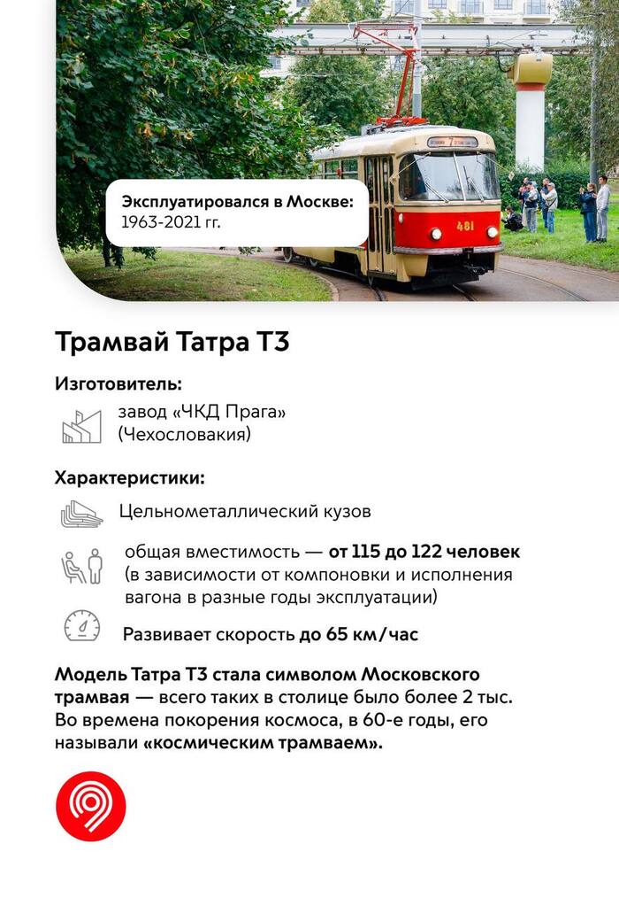 Какие трамваи примут участие в параде смотрите в карточках, сделанных московским Дептрансом.