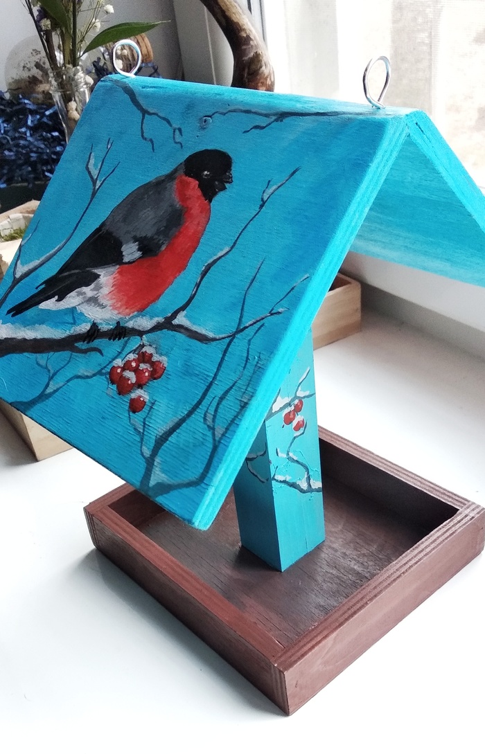 17 SssugarFree Лига Художников О птичках 7 лет назад Небольшая кормушка для птиц из дерева, рисунок акриловыми красками. Показать полностью 3 [моё] Кормушка для птиц Снегири Синица Длиннопост Кормушка Птицы Роспись Роспись по дереву Акрил