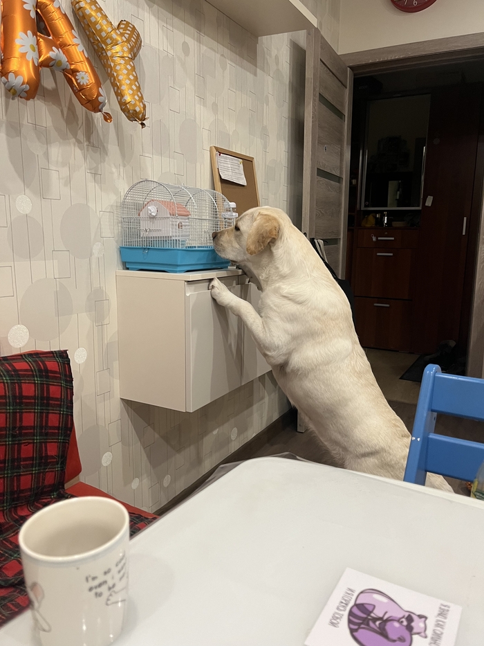 - лабрадоры всегда стремятся быть рядом с хозяином. Тут не тот вариант, что для собаки нужно много места или нужна большая квартира. Лабрадор всегда крутится под ногами, если ложится рядом, то пытается лечь непременно на ногу - собачьим локтем на ступню очень больно(