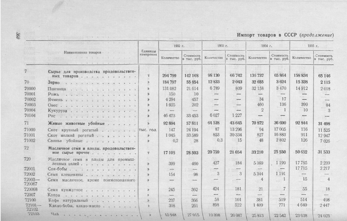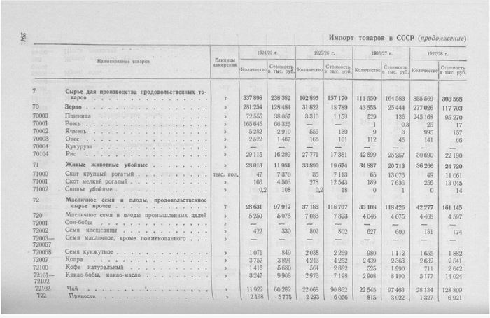 Импорт превышал экспорт (в тоннах или в тыс.тонн по разному в разные годы) в 1919-м, 1921-м, 1921/1922, 1928 (октябрь - декабрь) и в 1964-м.