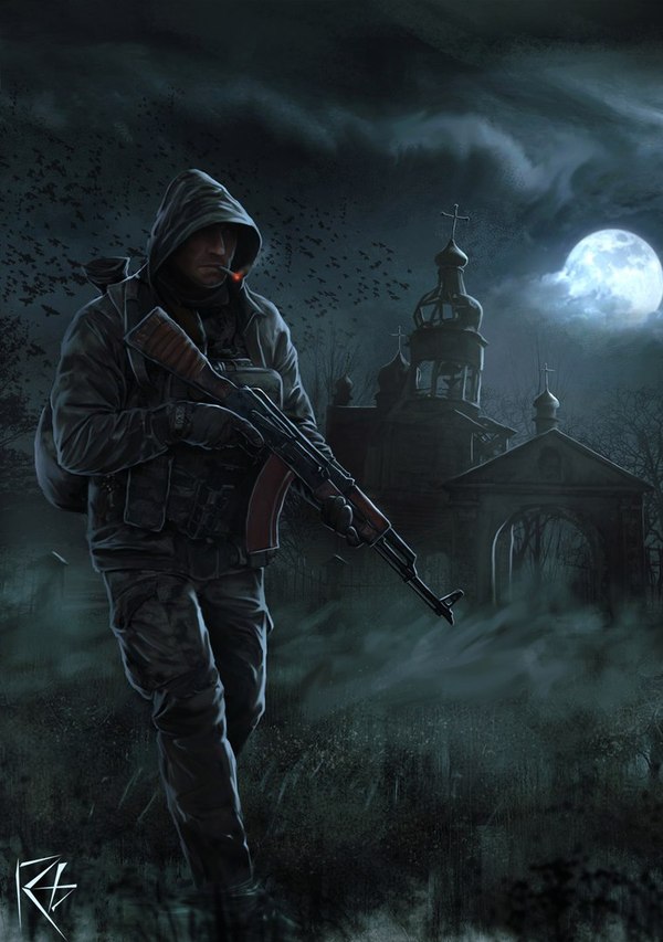 Странный этот Сталкер оказался. Еще когда привал устроили заметил. Я пару глотков сделал, а он целую бутылку выжрал и ничуть пьяным не был. Около "штей" вообще мистика началась. Я отвернулся на секунду от Сталкера, повернулся, а его и след простыл. Только калаш на земле валяется. Его я забрал себе.