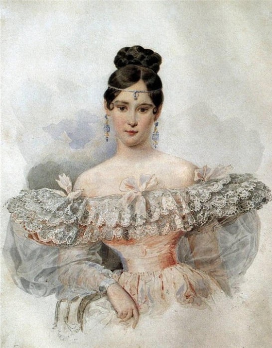 В 1823-24 годах в Одессе поэта захватила страсть к Елизавете Ксаверьевна Воронцовой, жене генерал-губернатора М.С Воронцова, племяннице князя Потемкина. Любовь была тайной, пылкой и взаимной, что вылилось в восхитительную лирику того времени. Однако вскоре Пушкин получает предписание о высылке в Псков, об этом позаботился томимый ревностью муж Елизаветы. Расставаясь, Воронцова подарила возлюбленному свое изображение в золотом медальоне и кольцо–талисман, чем тот очень дорожил. А вскоре после разлуки с любимым Елизавета родила дочь Софью. В 1832 году Елизавета Ксаверьевна приезжала в Петербург с дочерью и даже познакомилась с Гончаровой, которая скорее всего знала правду о происхождении Софьи.