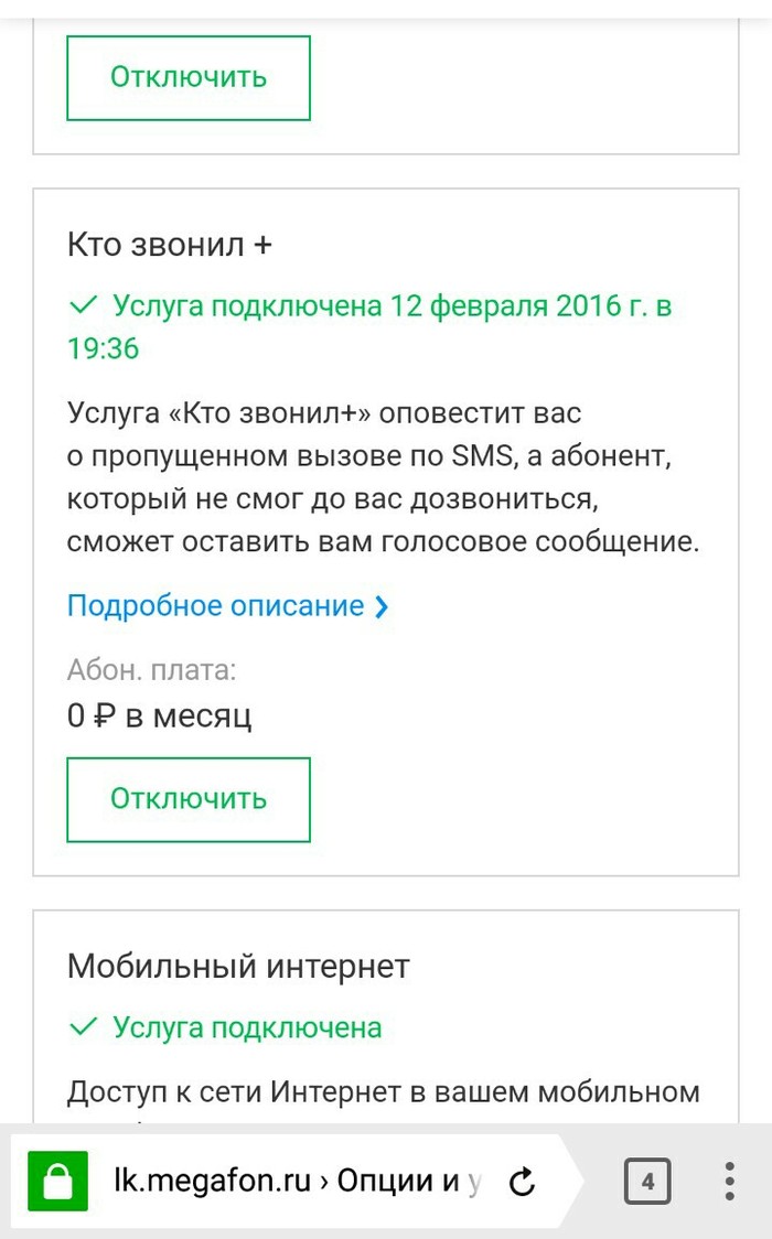 Перешёл на страницу личного кабинета, открыл вкладку услуги и на первый взгляд всё хорошо и впоряде