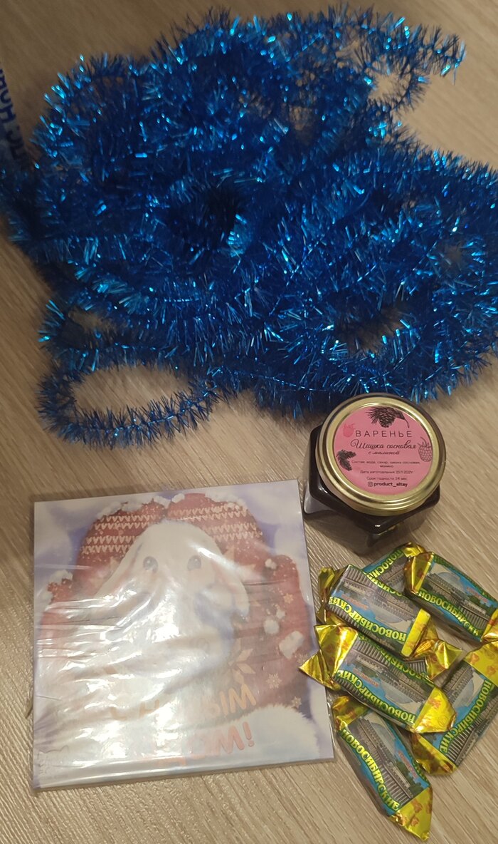 Хотела я свой подарок распаковать после боя курантов , но терпения не хватило, открыла пораньше. А вот мой получатель написал, что сделает именно так, вот я и не знаю, понравилось ему или нет. Очень надеюсь, что понравилось.