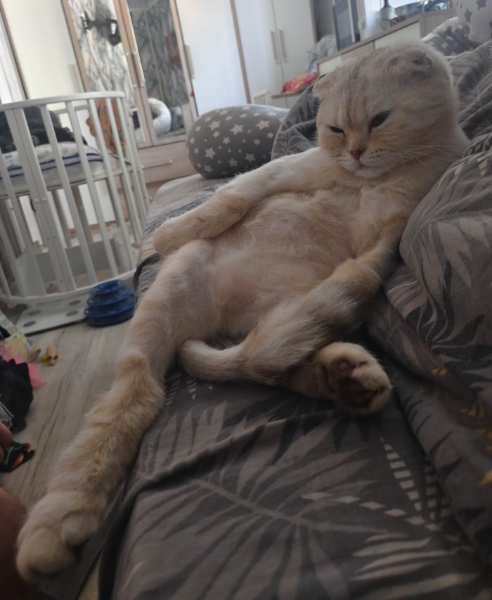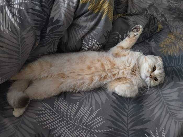 Эту даму я зову "Зверь-кошка". На самом деле она очень ласковая и добрая, но приехав к нам в гости и увидев двух моих мейнкунов, очень сильно напугалась - ходила рычала, дралась с нами, на руки не давалась. Просто 2 кило ярости! Мои куны (9 и 11 кило) выглядывали из-за угла на это чудовище и боялись к своим мискам подойти.