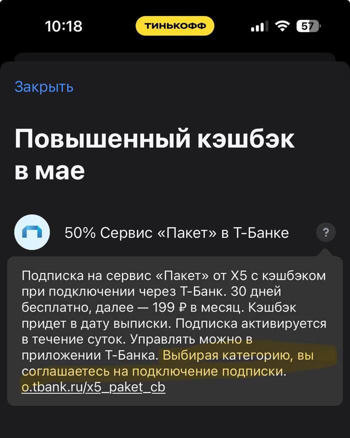 Т-банк и подписка "Пакет" от Х5