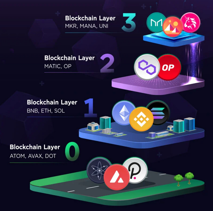 Грубо говоря, представьте, что L1 сеть это банк федерального масштаба, L2 небольшой региональный банк, который находится только в конкретном районе страны, а L0 - это как SWIFT переводы, которые объединяют банки из разных стран.