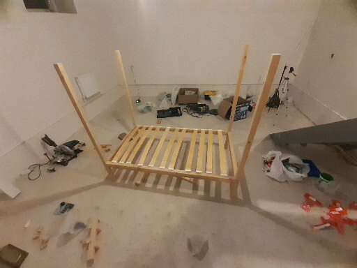 А стену кухни с туалетом пришлось укреплять брусьями т.к. планировалось вешать кухонный гарнитур. А далее немного фото со сбора конструкций потолков....