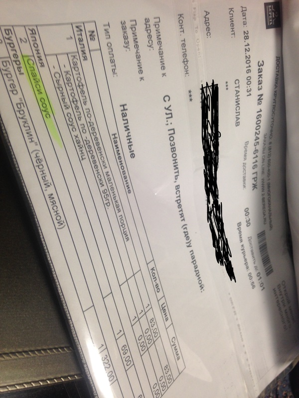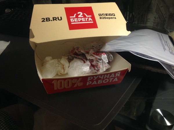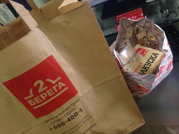Заказал под Новый Год я себе бургер с картошечкой по-деревенски и соусом Спайси в "2 берега". Под Новый Год это не 31 декабря в 9 вечера(хотя и это было бы так себе оправданием такого отношения к покупателю). Заказывал ночью с 27.12.2016 на 28.12.2016. Если кто не в курсе - "2 берега" крупная компания по доставке готовых блюд в СПб и ряде других городов. Заказывал у них, т.к. ребятки предлагают одну из самых быстрых доставок по СПб. А кушать хотелось неимоверно. Обещали привезти за пол часа. Это у них получилось! Привезли даже быстрее. За это плюс. Заказ выглядел вот так: