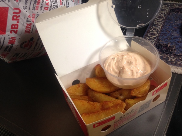 Есть один минус. Я заказывал по телефону и меня никто не предупредил о том, что к картошке идёт бесплатный сырный соус Хайнц, поэтому я взял себе ещё Спайси. Если бы предупредили, может я бы и не заказывал лишний))