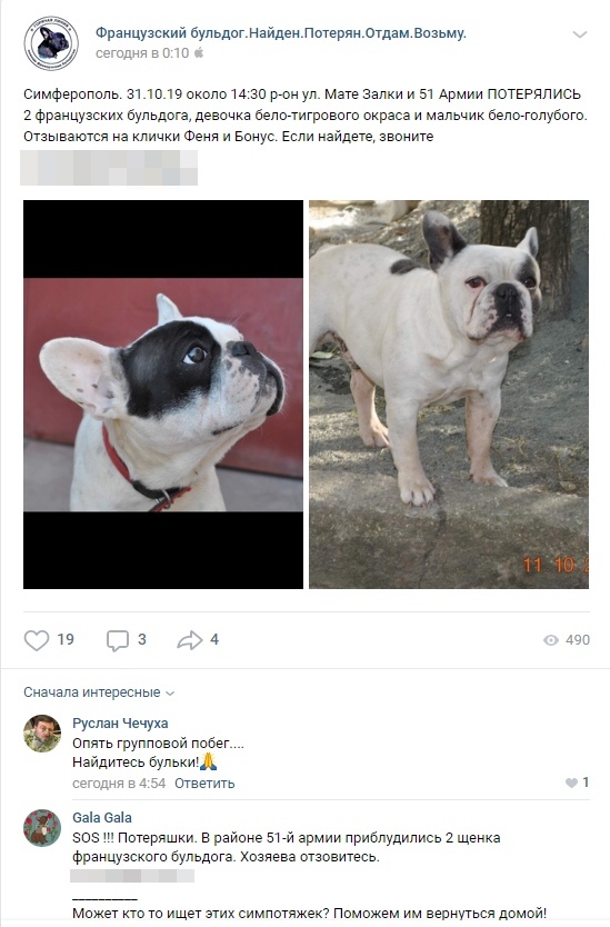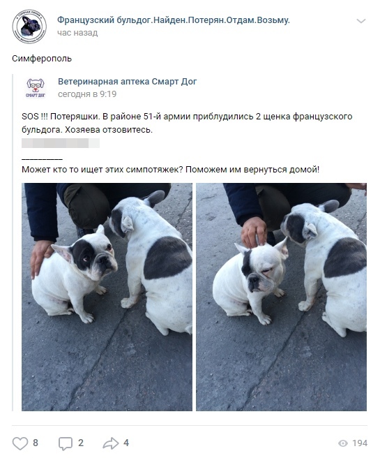 Счастливая история работы репостов или как нашлись щенки французского бульдога)