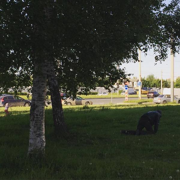 Стою на остановке и наблюдаю за этим романтично настроенным товарищем, который минут пять нежно обнимал березку, а после нарвал полевых цветов, да уполз куда-то в сторону ближайших домов.