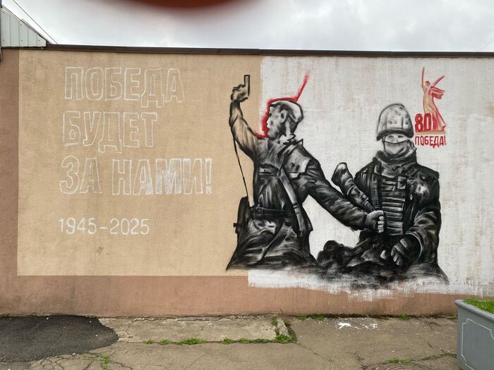 Два масштабных граффити в честь 80-летия Победы в Великой Отечественной войне команда Stenaclub в лице Алексей Серебренников (https://vk.com/brasho), Павел Бибишев (https://vk.com/apingvin31), Иван Серебренников (https://vk.com/3lati4) и команда.