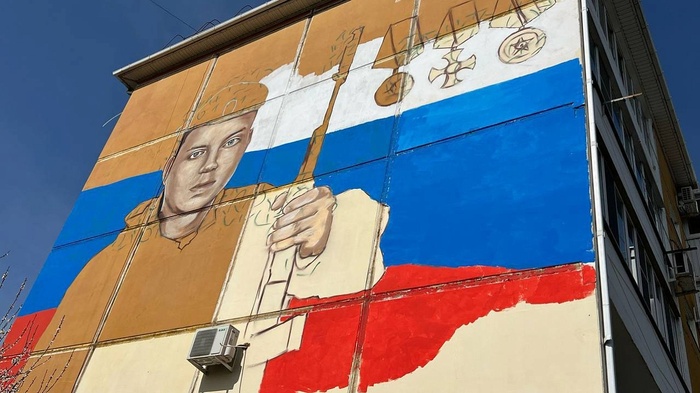 На здании по ул. Красных Партизан, 155/1 Мы создаем патриотический мурал. На нём изображены герои Великой Отечественной войны и специальной военной операции. Для бойца времён Великой Отечественной войны был выбран образ героя Советского Союза Алексея Гордеевича Ерёменко. Он известен по фотографии «Комбат» авторства Макса Альперта. Инициатива создания мурала принадлежит администрации Прикубанского округа.