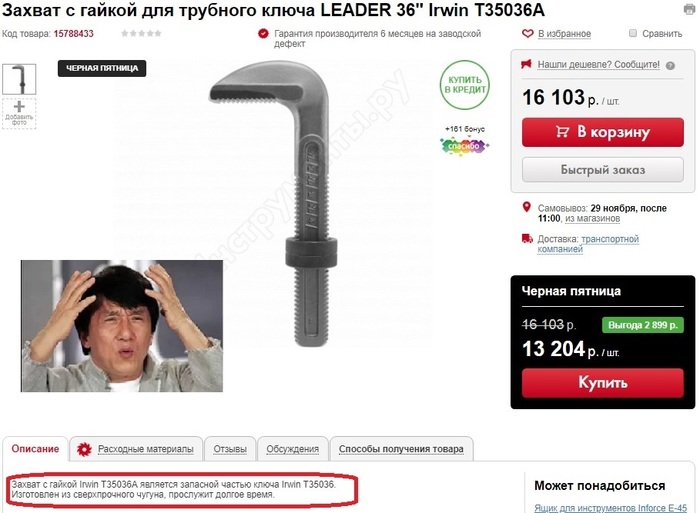 В честь черной пятницы решил я приборахлиться инструментом. Сразу оговорюсь, это не в коем случае не рекламный пост, а скорее пост негодования, не понимания и других НЕ. Зашел я значит на не безызвестный сайт «Все инструменты» и стал рыскать по каталогу чего бы по дешёвки урвать. И тут взгляд мой зацепился за стоимость тачки, а стоит она не много не мало 14 570р. со скидкой и 19 373р. в первоначальном варианте.