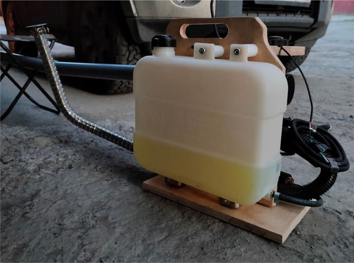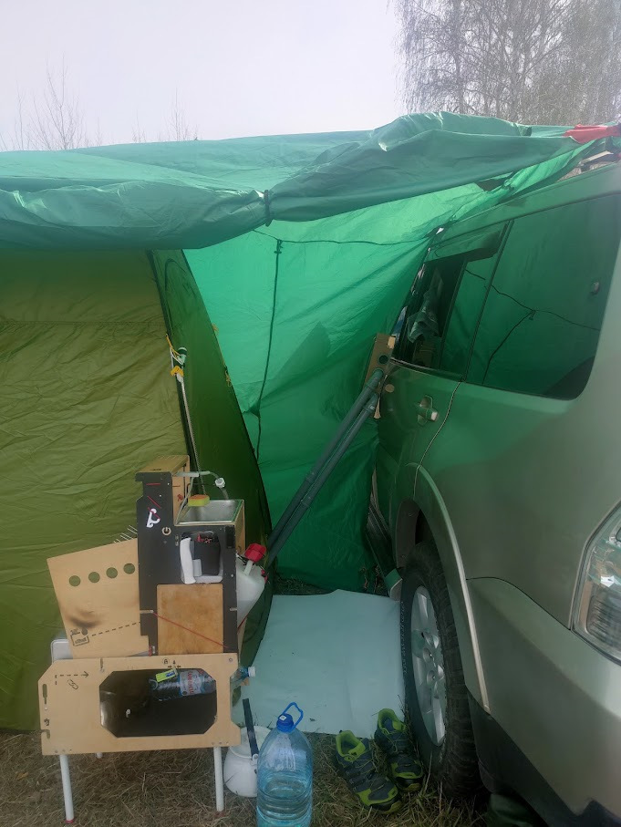 Этот делали чисто "под палатки", машину им отапливать особо не собирались, т.к. приятель — зимний рыбак, они в тёплых палатках спят. Концепция себя зарекомендовала просто грандиозно, стабильно, и почти без нюансов, поэтому спустя несколько лет я решил обзавестись таким же — но уже с прицелом на удобное применение с машиной.