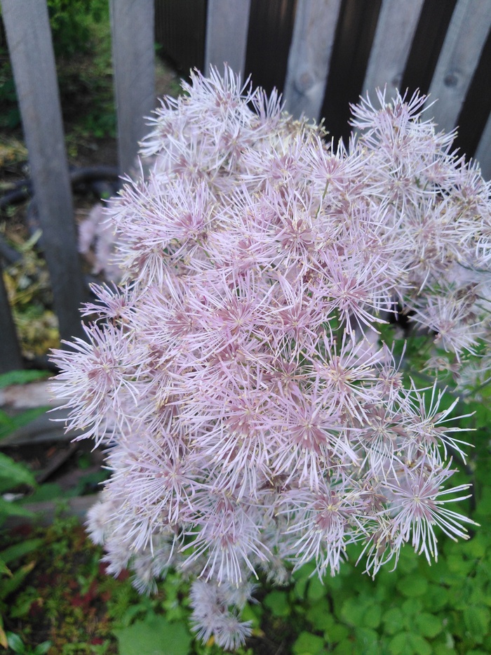 Василистник. Листья очень похожи на аквилегию (водосбор). Точно такой же кустик, но цветок - розовый пушистик.