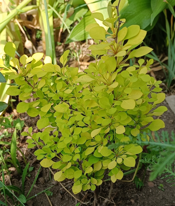 Единственный кустик, который растёт как хочет и всё равно красивый, это барбарис Тунберга. Он такой малюсенький, что даже его длинные шипы не доставляют хлопот.