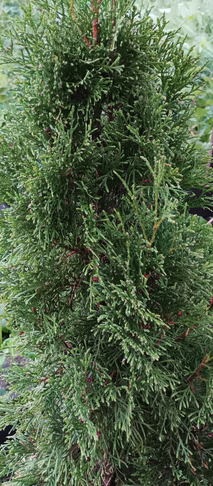 Хвойные Тсуга и туя Смарагт, их я посадила отдельно. Буду формировать композицию.