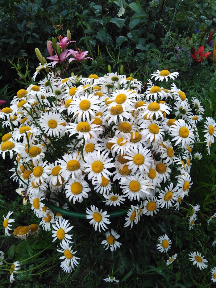 Ромашка красива пока цветёт. После цветения, лучше обрезать.
