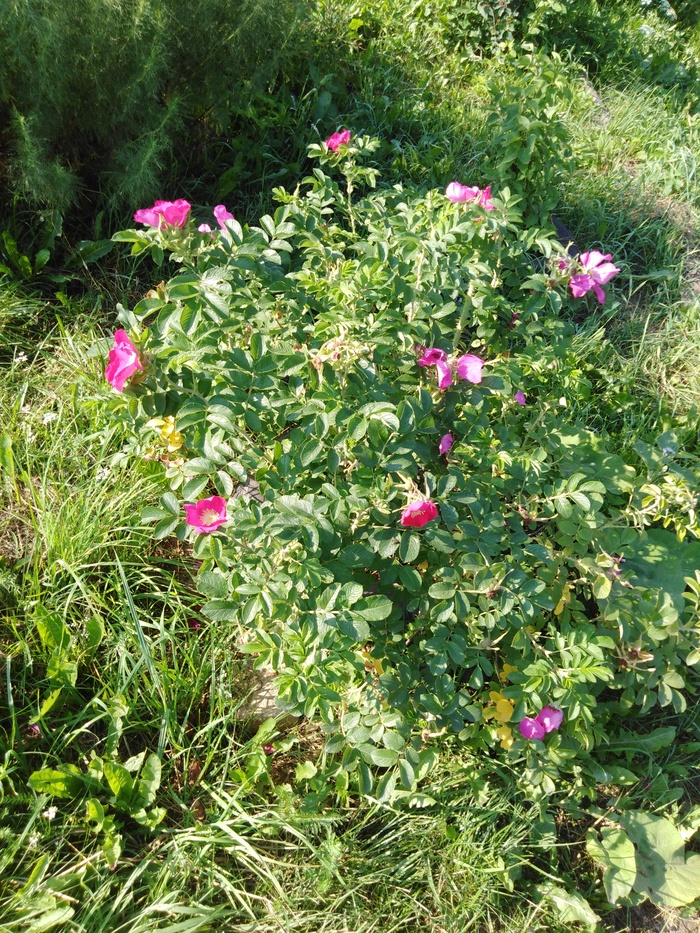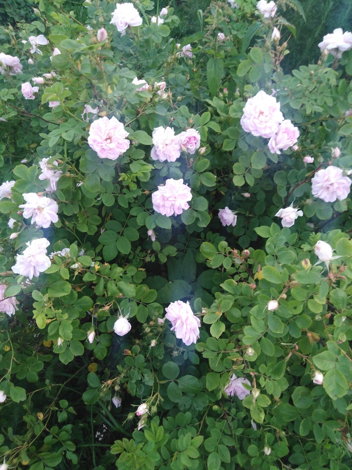 А это роза парковая. У неё побеги далеко не убегают. Мой любимый куст. Запах цветов, как чайной розы.