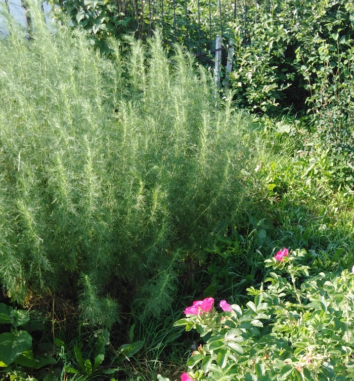 Полынь Божье дерево. Сажала такие нежные пушистики. Оказалось, что у них образуются твёрдые стволы! В прошлом году решила пересадить, так как куст стал мешать. Для этого пришлось обрезать почти до земли и огромный корень пересаживать. Сейчас отрастает бедолага.
